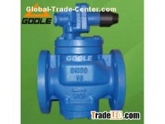 This series reducing valve is pilot piston type reducing valve, mainly composed of main valve and pilot valve. The main valve consists of valve seat, main valve disc, piston, cylinder sleeve, and spring. The piston valve consists of valve seat, valve flap, membrane, spring and adjusting spring. Set the outlet pressure through adjusting spring, sense the change of pressure of outlet with membrane, adjust the flow area of throttling part of main valve through open and close of pilot valve and drive the piston, to realize the function of reducing and regulating valve. The product made following improvement on the basis of normal pressure reducing valve, enlarge the piston area, change the throttle structure, change the sealing manner, improve the pilot structure and manner of adjusting spring, thus to improve the performance of the product.